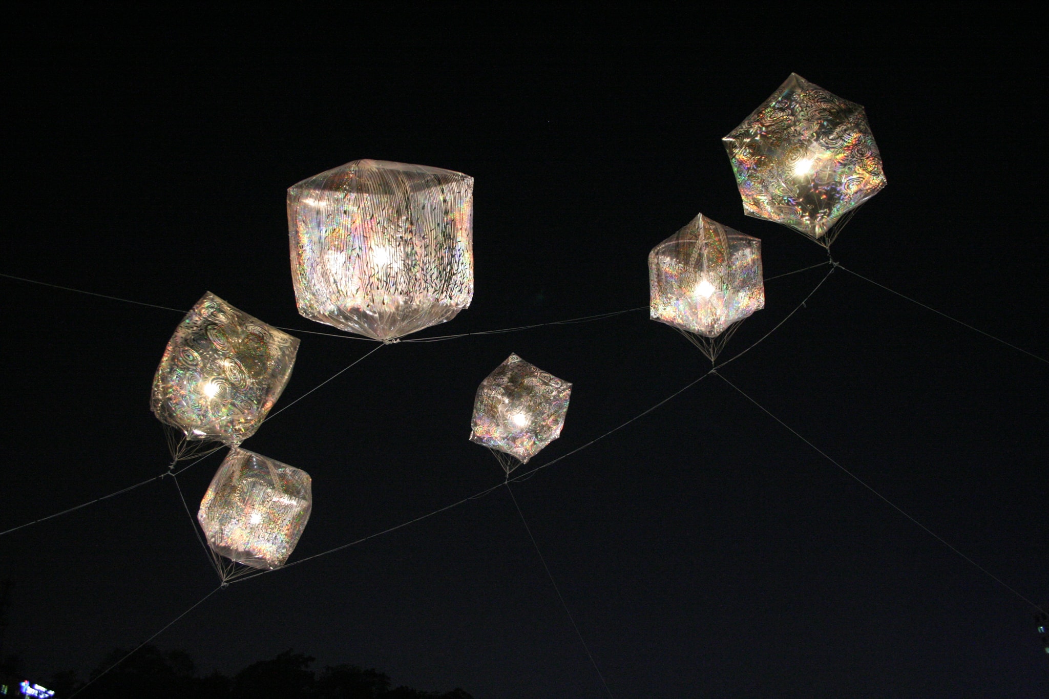충무로국제영화제, 부산국제영화제, 국립국악원 별밤축제, 서울시 창작공간 페스티벌 등을 통해 선보인 ‘일루미네이트 더 스토리’ 시리즈입니다. 조명을 내장한 벌룬 작품으로, 홀로그램 시트를 입혀 반짝임을 배가시키거나 지름 12m 도넛형 벌룬에 360도 스크린을 달아 프로젝션을 투사하는 기법으로 축제와 공연, 노래와 이야기에 빛을 더한 설치 미술 작품입니다.